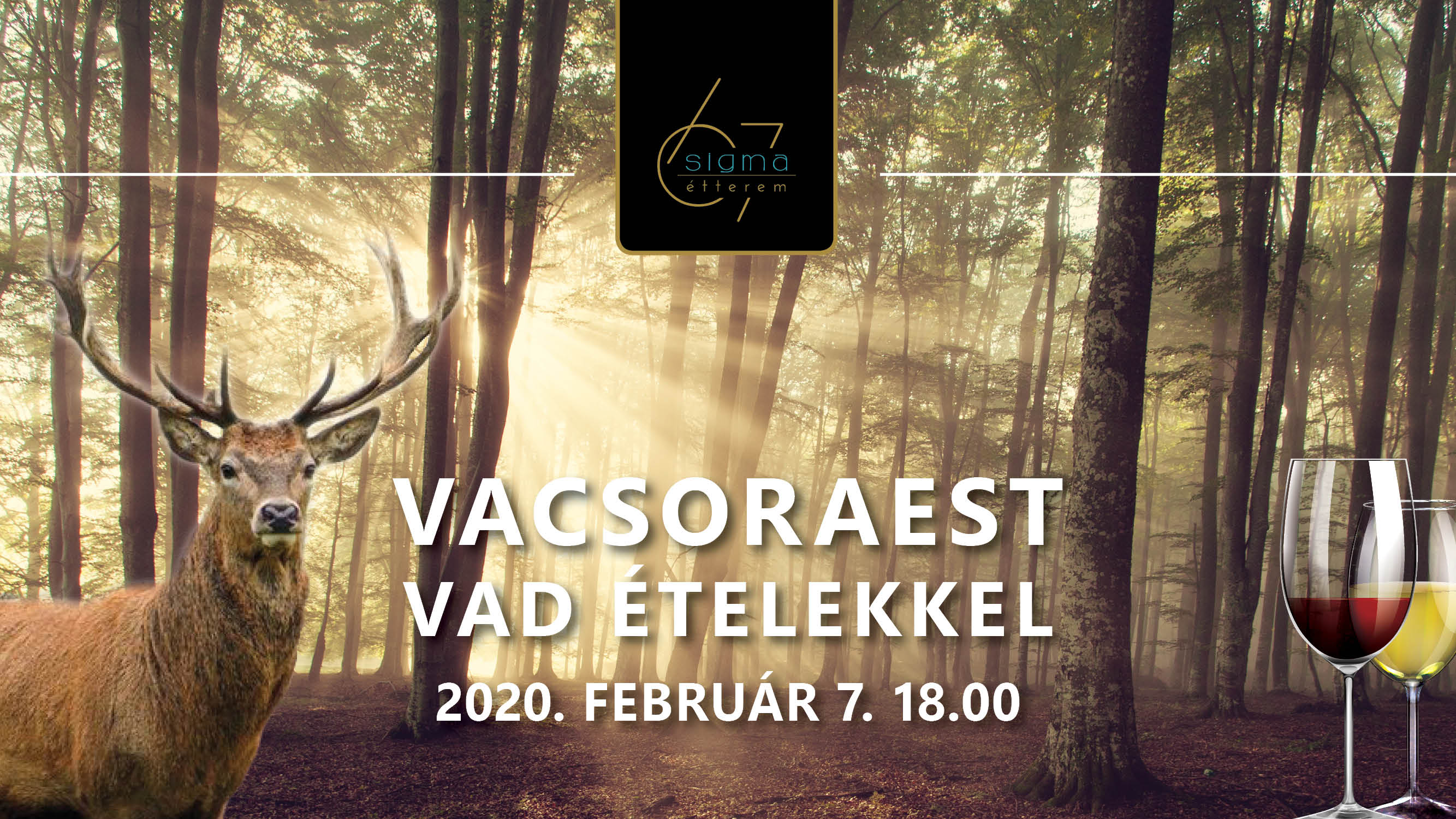 Hangulatos vacsora különlegesen finom vad ételekkel és kiváló borokkal, vadásztörténetekkel.